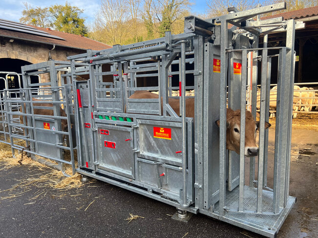 Portillons bas pour accès au pattes et mamelles de la bête.
