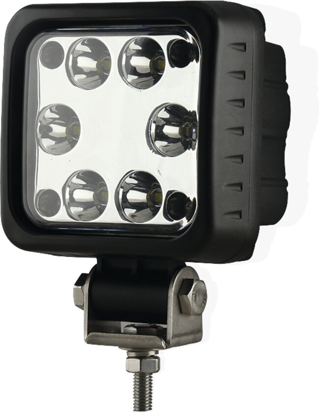 Phare LED Cree 30W carré, conçu spécialement pour la pulvérisation, avec faisceau de 90 cm et une puissance lumineuse de 3000lm pratique. Corps en aluminium, étanchéité IP68, conforme CISPR25 Class 4.Existe en bleu réf : 724733 au même tarif.